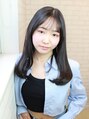 韓国風レイヤースタイル。低めの位置でレイヤーを入れ、ヘアアイロンで毛先を内巻きにします。