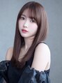 ミディアムヘアをナチュラルなストレートワンカールにしました。【気に入ったスタイルは「ブックマークする」ボタンを押して、ご来店時ご提示ください】姫カットレイヤー,フェイスフレーミング,フェザーショート,クラゲヘアー,アプリコットオレンジ