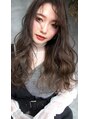 ベースはグレージュでしっかり赤味を抑えた暗髪に。表面と内側にハイライトを施しています。結んだ時、巻いた時に可愛いスタイルです。