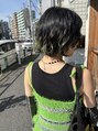 毛先のブリーチ履歴を夏っぽい爽やかなグリーンに。襟足ギリギリのボブにバッサリカット◎涼しげなサマースタイル^ ^