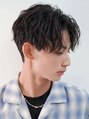 色気溢れるセンターパート!前髪は少し目にかかるくらい、サイドはすっきり前下がりライン、襟足は刈り上げずに短め。〔メンズヘア/渋谷/パーマ/波巻きスパイラル/マッシュ/センターパート〕