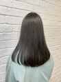外ハネ切りっぱなしボブ/暗めカーキアッシュ