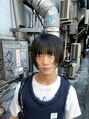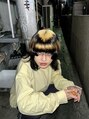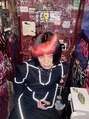 斜めでエンジェルリングをいれてます。。根元もブリーチしてますが、黒をデザインし、マニキュアで赤に染めたあとブリーチで濃淡つけてます。。