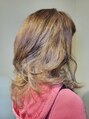 セミディレイヤー。サイドからバックにかけラウンドさせたレイヤースタイル。明るいイノアカラーで白髪ぼかしカラー施術。