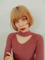 ハイトーンと丸みのあるシルエットが可愛いミニボブヘア。全体的に重めでまとまりがある中に顔まわりのレイヤーとハイトーンカラーががアクセントになっていて、普通のボブとは違った雰囲気をだせるスタイリングです。【いわき】