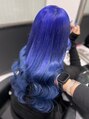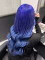 鮮やかな青に合わせてダイヤモンド毛質ディープブルーでロングに♪