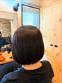 お客様の髪質を生かして前下がりボブにしました。ハリがあり髪もしっかりとして毛量多めのお客様です。