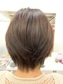 前髪、お顔まわり、トップの表面のみの気になる所のみ縮毛矯正をして、内側のクセ毛を活かしてボリュームを出して丸みが自然に出る丸みショートに。