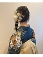 卒業式にぴったりな、上品さと華やかさを兼ね備えた和装ヘアアレンジ。立体感のある編み下ろしスタイルに、金箔と水引、ドライフラワーを贅沢に組み合わせて、特別な日を彩ります。袴姿をより美しく引き立てる大人可愛い一日限定ヘアです。