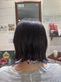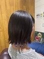 ブルーブラックカラーと切りっぱなしボブスタイルで涼しげな印象に