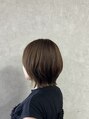 ストレートパーマ×外ハネウルフボブ毛先はアイロンでスタイリングしています。