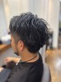 サイドのツーブロックと襟足の刈り上げで短く、表面は長さを生かしたメンズカットです。仕上げに波巻きとスパイラルの巻きで動きを出して毛先にニュアンスな動きを出しています。サイドパートで休日のお出かけからビジネススタイルまで幅広く対応できます。