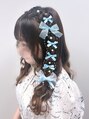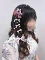 ハートを入れた編み垂らし!オプションとリボンつけ放題のクーポンなので、沢山お飾りをつけて華やかにしました!