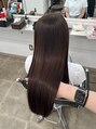cashmere treatmentでしっかりケアをして暗めの紫を入れています!紫は艶がたっぷり出るカラーなので艶が欲しい方にとってもおすすめです!cashmere treatmentはアイロンやコテを使う方にとても相性が良いトリートメントです(^^)