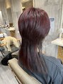 ロングレイヤーウルフ♪かっこいいウルフで個性的なオシャレスタイルが好きな方にピッタリ♪アディクシーカラーで艶やかなピンクブラウンに♪
