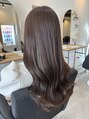 レイヤーはあまり入れずナチュラルな前上がりスタイル。髪を巻いた時に毛先の重みが少し残るようにカットしました。カラーは明るすぎない落ち着きのあるトーンで透明感が少し出るアッシュブラウン。