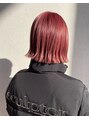 切りっぱなしボブにピンクカラーを合わせて個性のあるおしゃれボブに!