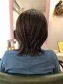 やや前上がりのベースにレイヤーと毛量調整でくびれのシルエットをつくりました。アウトラインは不揃いにカットし軽く見えるようにしました。多毛の方でも軽やかに見えます。