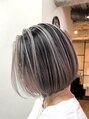根本は暗めに、毛先にかけてほんのり明るくなるように仕上げたバレイヤージュ。自然な陰影が生まれ、重くなりがちなボブでも軽やかに見えるのが魅力です。グレージュ×シルバーのニュアンスカラーで「品よく、でもちょっと個性的に」したい方にぴったりです!