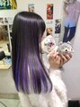 あんさんぶるスターズ!!から大神 晃牙くん推しカラーをアンブレラカラーでデザインさせていただきました。インナー範囲が多いアンブレラカラー。インナーブリーチは2回。少し青みよりの紫です。ご質問・ご相談→LINE(@393goncm),インスタ(@y_htkym)