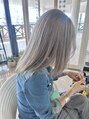 白髪率50%~60%のお客様にブリーチをプラスしてふんわり透ける“ホワイトミルクティー”カラーに。白髪を味方にしたカラーだからこそ出せる、まろやかで上品なニュアンスカラー白髪を隠すのではなく、活かす時。オシャレを楽しむ大人女性におすすめです♪
