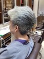 アウトラインがすっきりしたグレーショートパーマスタイルです。トップのボリューム感とサイドは流れるようにパーマをかけています。ナチュラルドライでもボリュームは出ますけどカーラーで巻くと仕上がりがエレガントになりますよ!