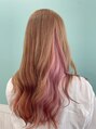ブリーチでベースを整え、王道kawaiiミルクティーにインナーで淡いピンクを入れました♪このスタイルではインナー部分を多めに入れたので、動くたび表面にもピンクがのぞきやすいです!表面とインナーの割合などもご相談ください!
