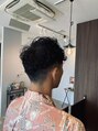 メンズパーマスタイルに黒髪が柔らかくなるようなネイビーカラーを。ブラウンではなく、ネイビーをのせることにより、ツヤ感色気をだす仕上げにしました。