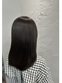 「暗めのオリーブ系カラー」です。オリーブ系は赤みを抑え、色落ちしてもきれいなくすみ感が残るのが特徴です。さらに、色持ちを良くするためにトリートメントで髪の保湿もしっかり行いました。