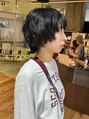 顔まわりを切り込んだショートほんのり襟足残してナチュラルなウルフにしてます◎パーマの残りで、ゆるくカール感もあります♪