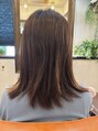 根元の伸びた部分の縮毛矯正と明るくなった毛先をカラーで落ち着かせました!長さも、肩にあたるボブで、トップはレイヤーでふんわり動きが出るように(*^^*)縮毛矯正でかなりボリュームが減って、艶のある仕上がりに♪