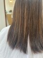 白髪染め履歴のある髪の毛への縮毛矯正です。一年に一回の施術提案をしています。真っ直ぐなりすぎると伸びたとこの境が気になったりお団子にするのが難しいとの事で、塗り分けをしています!パヤパヤ毛を取るにはいい感じなストレートにしました