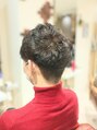 トップにパーマでゆるく動きとボリュームをつけたマッシュスタイル。耳周りと襟足はバリカンでスッキリと。スタイリングも簡単なパーマスタイルです。気に入ったスタイルはブックマークしてカウンセリングでお使い下さい☆