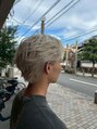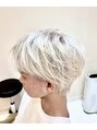 ハイトーン好きにおすすめの、圧倒的透明感ホワイトブロンド。ふんわりと動きを出した無造作ショートが、抜け感とモード感を両立。360度どこから見てもおしゃれ見えする、個性派ストリートスタイル!人と差をつけたい方にぴったりの、攻めヘアです。