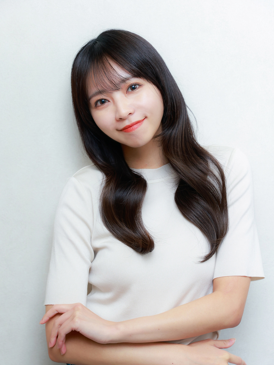 韓国風くびれレイヤースタイル×透明感ネビージュカラー