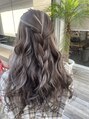 顔まわりにシルバーのフェイスフレーミングを入れて、一気に華やかさと立体感をプラス。ロングヘアとの相性も抜群で、巻いてもストレートでも印象的な仕上がりに。抜け感と個性を両立した、ワンランク上のデザインカラースタイルです。