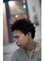 ザクザクした質感のパンクショートに赤でポイントカラーを入れて立体感を出したスタイルです!