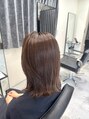 外ハネミディアム毛先にオイルトリートメントを馴染ませて軽やかスタイル外ハネにすることで動きが見えやすくくびれがつくので頭の形も綺麗に見えます是非ご相談ください
