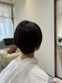 お待ちの癖を生かしたヘアスタイルです。襟足の長さは癖でおさまる所でカット!ブローのみで収まるようにトップは少し長めに残しています顔まわりは軽くしすぎないようにしております!