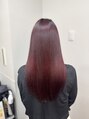 イノアカラーでこの発色と艶感キレイに仕上がりました。(髪の状態によってはブリーチは必要です)今回は赤とピンクをベースに、大人女性にも似合う赤×ピンクカラーに仕上げました。オイルの力で染めるイノアカラーは、髪と地肌に優しく指通りもなめらか。