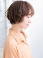 ★お気に入りスタイルは【ブックマーク】を★ルーズなくせ毛風カールとオン眉シースルーバングの重めスタイルを耳かけして軽さを出した丸みショート。旬なアプリコットオレンジなど暖色系カラーで。ナチュラルボブからのイメチェンに♪