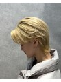 渋谷/フェザーショート 刈り上げセンターパート ホワイトブロンド エンドカラー 波打ちパーマ