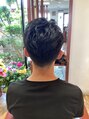 サイドは6ミリのツーブロック、バックは6ミリの刈り上げ、クセを活かした束感のあるビジネススタイルに仕上げました。