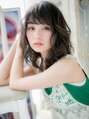 ★お気に入りスタイルは【ブックマーク】を★明るいベージュ系カラーとアンニュイカールでガーリースタイルに。伸ばしかけや直毛の方にオススメです。厚めバングが小顔効果もUPさせます。くびれミディやくせ毛風カールが気になる方も色々ご提案します☆