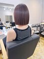 チョコピンクアッシュでカラー。アゴラインでカットすることで首元もスッキリして小顔に。
