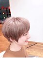 セピアベージュのショートスタイルです。柔らかいハイトーンカラーも似合うボーイッシュなショート