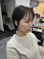 毛量調節をしっかりとしたくびれショート。多毛さんでもCUTで頭の形をスッキリ見せ、スタイリングを簡単にします。カラーは落ち着いたブラック寄りのブルーグレージュ。