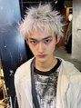 古正寺/men's/フェザーショート 刈り上げセンターパート ホワイトブロンド エンドカラー 波打ちパーマ