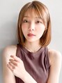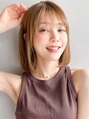 前髪薄めバングアプリコットオレンジ艶感似合わせカット/ホットペッパービューティー