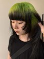 黄緑と黒のルーツカラーは定期的にいただく派手だけど人気オーダーです◎黄緑の色落ちは意外と綺麗に落ちるのでおすすめ(^^) 気に入ったスタイルは【ブックマーク】をして来店時お見せください♪